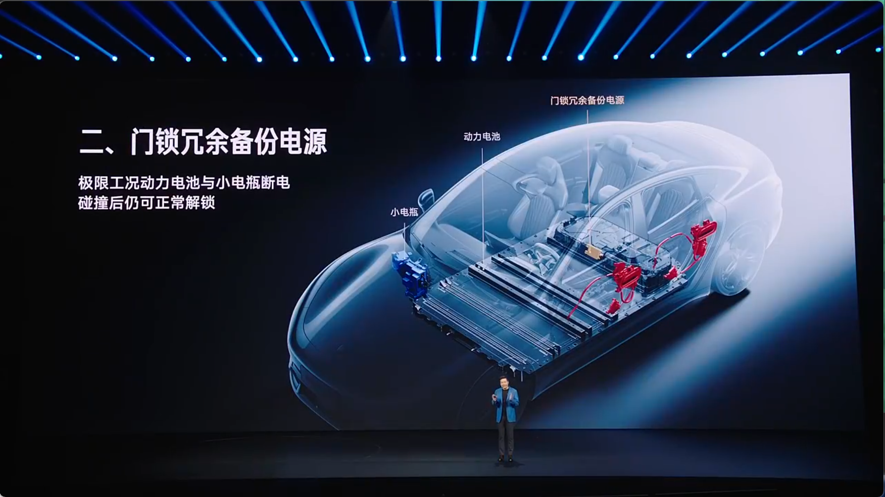 针对极端工况下的逃生设计,新一代SU7的门把手提前100%符合将于2027年实施的新国标。车辆不仅配备车外机械拉手和车内四门应急机械拉手,还搭载了具备三重冗余备份的三套电源系统 。在动力电池与小电池同时断电的极端工况下,冗余备用电源仍可保障车门紧急开启。