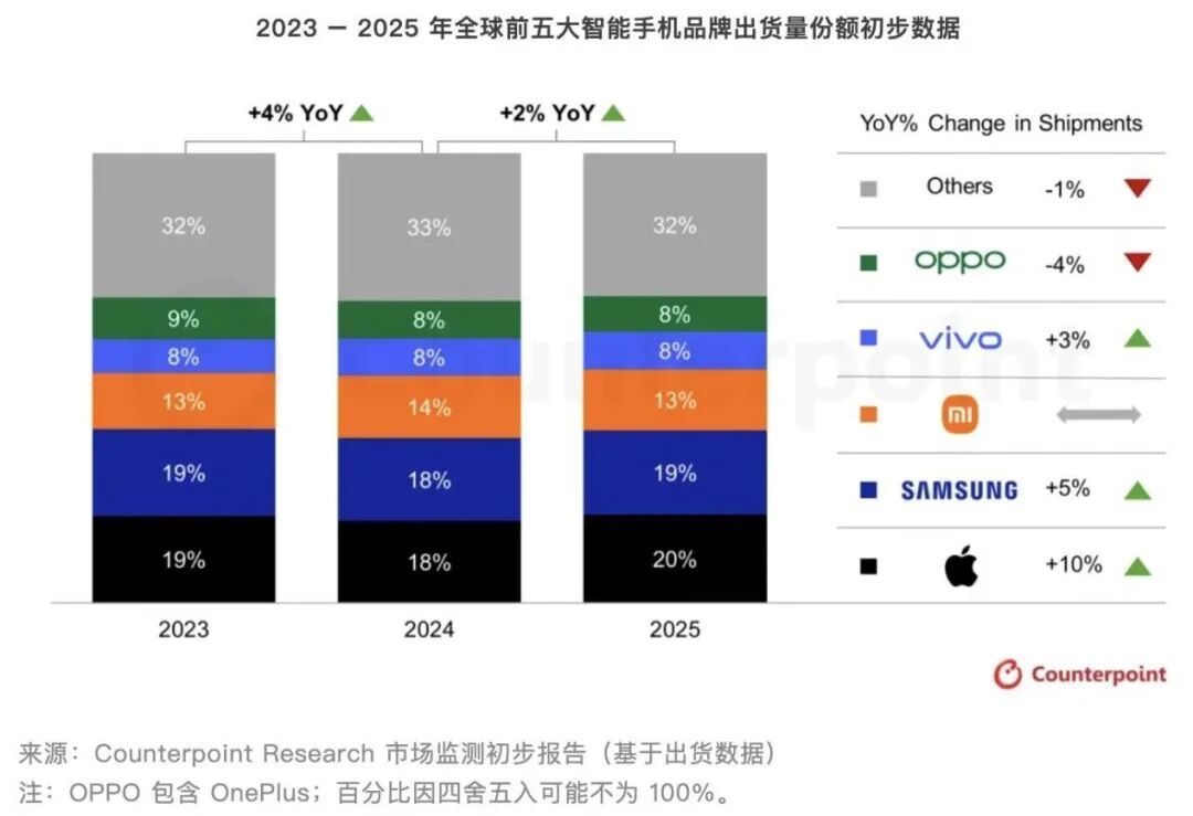 手机涨价非但没能刺激消费,反而让消费者趋于理性。Counterpoint Research预测,2026年的智能手机市场出货规模或许会跌破11亿件,同比大减12.4%,创下2013年后新低。Omdia甚至表示2026年全球智能手机出货量可能下降超过15%。