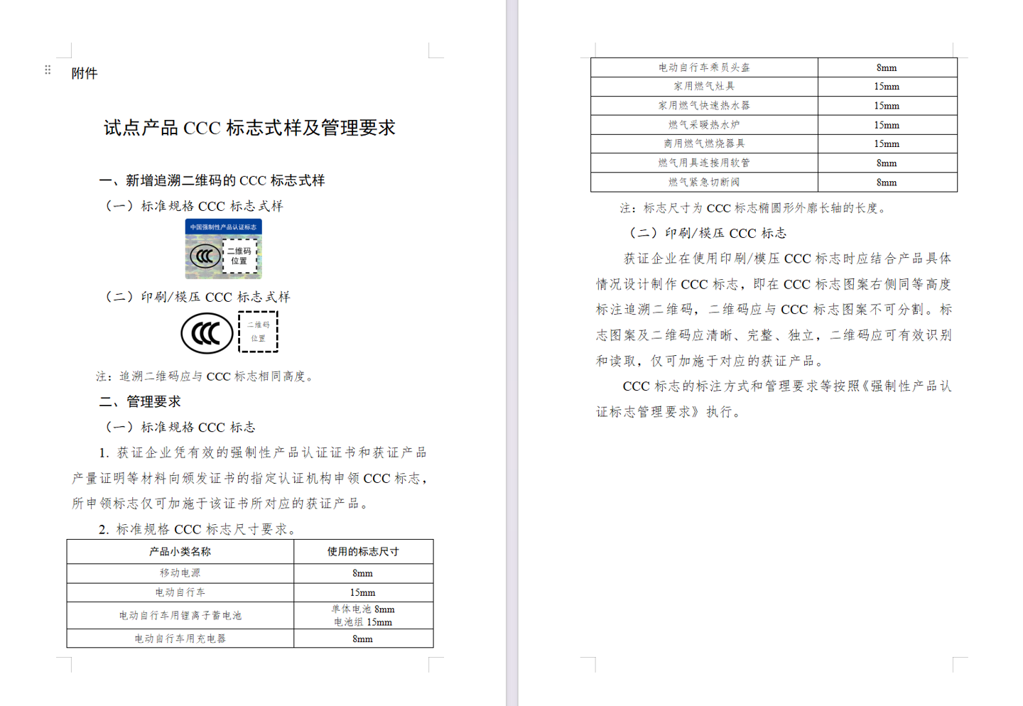 IT之家注意到,2025 年底,市场监管总局(国家认监委)就曾发布公告,对充电宝、燃气燃烧器具、电动自行车等共计 3 类 11 种高风险产品实施 CCC 认证标志试点改革。官方还公布了追溯二维码 CCC 标志的式样: